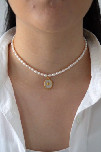 Collar Perlas Naturales con Bolitas Doradas